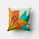 Orange liljaabstrakt som designen kudder på, dämpar med ett ljust pudrar blåttbakgrund