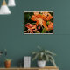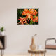Marknadsför ditt företag eller bostad med denna orange tigerlily-affisch. Denna affisch designades utifrån ett fotografi av mina blommor på dagen då de slog ut. Fotografiet togs på morgonen när dagg fortfarande fanns på alla blad. De mörka fläckarna på tigerliljorna gör att denna blomma ser exotisk ut. Här är min tigerliljesamling:
