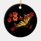 TigerSwallowtail fjäril på röda blommor Julgransprydnad Keramik