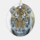 Tigerunge i snö tätt upp porträtt julgransprydnad keramik