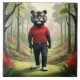 Bilden är en tiger som är tryckt för golf och spelar golf i skogen.