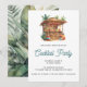 Tropisk inbjudan design med en akvarell tiki bar illustration och en tropisk löv bakgrund, den perfekta passformen för en cocktailfest, sommar bakgård grillfest, pool fest eller tropisk bröllops shower! Helt anpassningsbar text mall.