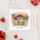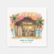 Tiki-temacocktailblöjor har en vattenfärg Tiki pub på stranden vid solnedgången med handflatan träd, sträng ljus, Tiki-torkar och Aloha hälsning. Tropiska cocktails, ananas, hibiscus och handflatan löv, en ytskiva och en papegoja i en pirat som dekorerar pub. Underbar för bröllopsmottagning, par-dusch, förlovningsfest och årsdag firande med strand-, Tiki- och luau-teman. Art av KL Lagrar