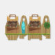 Tryckt bamboo och handflatan löv Tiki Pub med tropiska cocktails, surfor och handflatan träd