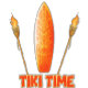 Tiki-tid för tropiska paradis. Kocksvansar på stranden Tiki stil.