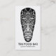 Ett attraktivt affärskort med ett djärvt original av hand plockade Tiki Mask stil motif Company namn och affärstyp på framsidan med namn och andra kontaktuppgifter på baksidan med tre Tike mask-motiv.