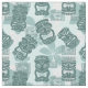 Roliga Tiki heads mot en bakgrund av tropiska blommor och Polynesian symboler. Ett underbart tyg för din retro sömnad projekterar!