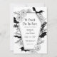 Bärk invigningen av "Til Death Do Us Part" med vår Gothic Bröllopinbjudan, perfekt för en Halloween bröllop. Denna moderna, elegant-design kombinerar en bioestetisk mörk med en moody, spooky vibe, som fångar kärnan av ett firande i oktober. Den här inbjudan, som är imponerande förtjust i motiven för fladdermus och spindelnät, visar vid sidan av den ömtåliga blommigten inslag en slående svart-vit palett för färg. Ange tonen för din speciella dag med en unik blandning av hemlig skönhet och elegans.