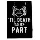 Bröllop-gästpåsar med citatet "Til death do we part" och skelett händer utgör ett hjärta. Black party förser sig med ett redigerbart datum och initialer från bruden och brudgummen. Se till att besöka vår samling för att se fler samordningsobjekt som matchar den här designen för din speciella händelse.