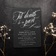 Elegant mörk Halloween eller bröllopsinbjudan med Til död gör att vi kan skriva i ett snävt vitt kalligrafiskt skript. Lägg till inbjudan i vitt mot svart bakgrund.