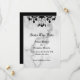 En svart kristallkrona och en kuslig typ dekorerar denna spara datera på en marmorbakgrund. Det är den koordinerande sparan datera för, Til död gör oss samlingen för delmarmorbröllop. Om extra, behövs koordinerande objekt precis för att kontakta oss på prettyfancyinvites@gmail.com med din förfrågan.