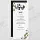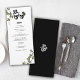 Ett Gothic Halloween-skript med bröllop med vindruvor, döskallar och hjärta av svart blommigt. En vit Halloween-design som användor svart och mörk botaniskt grönt tillsammans med vintage-skript för kalligrafi. En snyggt döskallar en gotisk design som passar perfekt för Halloween bröllop-teman. En unik svart botanik-, döskallar- och bröllop-menykortsdesign. Det finns också möjlighet att matcha bröllopsinbjudningar och andra artiklar i kontorsartiklar.