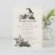 Den här eleganten är den gotiska "Til Death Do Us Part" Irish inbjudningskort för möhippan med handritade irländska och gotiska temaillustrationer i svart bläck, som visar 2 döskallar och en svart kråka med grönt ro, löv, bär, vilda blommor och grönt klöver. Baksidan har ett vackert mönster med inslag. Elegantens elfenbensbakgrund. All text kan redigeras.