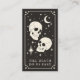 Den här gotiska Spara Datumkortet har en utformning av ett tarotkort stil i en svart och gräddaktig palett i färg. Bilden visar två döskallar som är vända mot varandra. Bakgrunden har en måne och en tvillingstjärna. Texten på framsidan säger till Döden gör oss en del. Det här skulle vara perfekt för alla som har ett kelestial eller Star Temed bröllop eller för någon med ett häxigt eller gotetiskt estetiskt ämne att gå på ett palmister eller en förmögenhetsberättande tema.