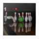 En keramisk bricka med ett foto av bowling stift.