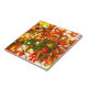 Fiery orange och guld löv skapar en abstrakt autumnal mönster på denna ljusa keramiska bricka. Kan ramas för att göra en attraktiv dekoration, eller en perfekt som serverar trivet.