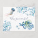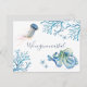 Ett vykort för flytta vid kusten som låter vänner och familj få veta om ditt nya hem. Den här enkla designen har en kopia av min ursprungliga vattenfärg bläckfisk, maneter, stjärnfisk och havskoral i blå nyanser. Ord, den Borta kusten, är inskriven i en modern manuskript. Använda mallen fält för att lägga till anpassningsbar, ny adress och namn. En strand som ändå är sofistikerad att skicka till vänner och familj för ditt nya hem i Cape Code, Maryland, North Carolina, Hawaii, Florida eller tropisk destination och kustdestination. Tittar du en digital fil? Jag kan hjälpa till. Convo mig för detaljer. Art och designad av Victoria Grigaliunas. Mer information finns på www.zazzle.com/dotellabelle