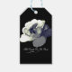 Add a touch of dark romance to your special day with these personalized gift tags. Featuring a ethereal white rose graphic on a striking black background, this design is perfect for gothic weddings, Halloween-themed parties, or engagement celebrations. The elegant script font pairs perfectly with the powerful "Till death do us part" vow. Ideal for wedding favors, gift bags, or as a unique tag for a bridal shower.
