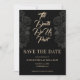 Den här designen ger ett Halloween-tema "FORTFARANDE DATH DO US PART" med häpnadsväckande svart ro mot svart bakgrund och elegant faux-skript i guld, perfekt för par att planera en scoky, elegant gothic bröllop-ceremoni. Det här kortet är enkelt att redigera med dina personuppgifter.