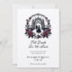 Till Död do oss Part Elegant Goth Spara datuminbjudan Embrace evial romantik med vår "Till Död Do US Part" Spara datumet - en häpnadsväckande prägel av gotisk elegans och tidlös hängivenhet. Det här mycket designade biet har en förfärligt vacker illustration av att bruden och brudgummen går hand i hand mot altaret och symboliserar deras resa helig in i evigheter. Innesluten av en lavisk andedräkt av djupt förlamat ro och utpressat grönt fångar scenen mörk romantik och mystik. Den här inbjudan är rik på humör och detaljrikedom och förenar gotskt glamor med förfinad sofistikering, vilket anger perfektens ton för ett bröllop som styrs av passion, drama och eviga vows. Den här inbjudan är mer än ett budskap som trycks på lyxkortet lagrar - det är en viktig sak som är värdig din mest oförglömliga dag.