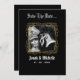Meddela din stora dag med djärv gotisk stil med detta "Till döden skiljer oss åt" kort. Designat med en dramatisk svart bakgrund, intrikat guld art deco ram och slående skelett-sminkat par, är detta kort perfekt för par som planerar ett Halloween-bröllop, gotisk romantik eller alternativ firande. Personifiera med era namn och bröllopsdatum för en kusligt elegant souvenir som sätter scenen för er speciella dag. Kombinera med matchande inbjudningar och förlovningsfest-papper för en komplett gotisk bröllopssvit.