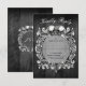 Detta 'till döden skiljer oss åt' gotiska skelett bröllop RSVP-kort kan anpassas med din information i elegant typografi och monograminitialer på baksidan på en svart rustik träbakgrund. Designad av Thisisnotme©