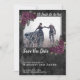 Spara datumkortet med "Död", "mörk lila ro" och en svart bakgrund i mönster. Skripttypografi. Anpassa med ditt eget foto.