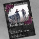 Spara datumkortet med "Död", "mörk lila ro" och en svart bakgrund i mönster. Skripttypografi. Anpassa med ditt eget foto.