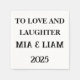 Fira kärlek glädje över anpassningsbarna "Till Kärlek och skratt" - perfekt för bröllopsreceptioner och romantiskt firande. Anpassa med ett par namn och år som "Mia & Liam 2025". Skrivs ut på förstklassig 3-skiktservetter med en elegant fet design för att höja bröllop-dekorationen.
