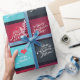 Ett negativt mönstrat fyrkantigt block med Kärlek-budskap om att Mamma skall omfamna Pappert i blått, rött och Grått