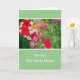 RÖDA OCH VITA PETUNIOR. GENOM ETT SVAGT TRÅDSTAK, ROSA OCH GULA BLOMMOR BLANDAT MED GRÖNT LÖVVERK. FRAMSTEXT: "TILL MIN ANDRA MAMMA" OCH INSIDETEXT: "DU ÄR SOM EN ANDRA MAMMA FÖR MIG. TACK FÖR DET. KÄRLEK OCH GLAD MORS DAG" TEXTEN ÄR HELT ANPASSNINGSBAR.