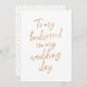 Ett modernt "Till min brud på min bröllopsdag"-kort till dina föräldrar. Om du klickar på knappen "Anpassa" kan du lägga till en bakgrundsbild för anpassningsbarna färg. OBS: ____________________________________________________ guld är inte äkta folie, är en digital effekt Detta är ett platt kort, det finns en vikad version _____________________________________________________________________________________________________________________________________________________________________________________________________________________