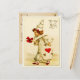 Till Kärlek! Vintage Alla hjärtans dagskort med en söt, liten, clown tjej med hjärtan på hennes dräkt och hatt. Hon håller en stor, röd båge.