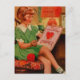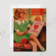 Vintage Alla hjärtans illustration av en flicka som sydde en kor-stygg Alla hjärtans hälsning för hennes mor.