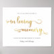 Till minne av älskade guld 8x10 bröllopsskylt poster
