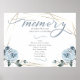 Dammtorpsblå blommor som passar din bröllopstema, ett minnestecken för att hedra de älskade, Bröllopsbönskylt. Använd denna korta bön eller ersätt med din egen, eller lista namn på dina älskade familjemedlemmar som inte längre är med oss Akvarellrosor, blad och bär i modern chic dammtorpsblå omger en geometrisk terrariemodell i guld med salvia grönska. Anpassa text, typsnitt, färg och storlek. Originalkonst skapad för BarefootBride™ av © WhimsicalArtwork™ - Det här är en del av en komplett bröllopspappersserie med matchande bröllop, baby shower och andra evenemangspapper.