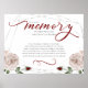 Dammtrosa rosor accentuerade med Cabernet-röda vinrosknoppar för att matcha ditt bröllopstema, ett minnesbröllopsskylt med en bön. Använd denna korta bön eller ersätt med din egen, eller så kan du till och med lista namnen på dina älskade familjemedlemmar som inte längre är med oss Akvarellrosor i modern chic blush och vin omger en geometrisk terrariestil silverram. Anpassa text, teckensnitt, stil, färg och storlek. Originalkonst skapad för BarefootBride™ av © WhimsicalArtwork™ - Det här är en del av en komplett brölloppsutskrift med matchande bröllopps-, baby shower- och andra evenemangsutskrifter.