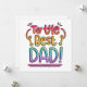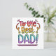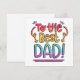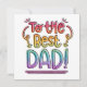 En kortdesign som lyder "Till den bästa PAPPA!" i en regnbågsfärgad, snygg handskriven stil. Huvudfärgerna på bokstäverna är lila, blå, grön, gul, orange, röd och rosa - de har blandats ihop för att skapa en regnbågseffekt. Bokstäverna har sedan konturerats med en fet, svart, osymmetrisk ram för att få färgerna att POPPA! Designen sitter på en enkel men effektiv vit bakgrund.