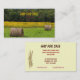 Till salu särdrag för detta visitkortadvertizinghö som en älskvärd höst landskap. Sommaren är över, och två baler av hö är uttorkning i en grön äng som gränsar ett fält av briljantgultgoldenrod. Därefter kommer skogen. Träden är mestadels gröna, men några som är höst färger av rött och gult, är startas att visa. All text kan skräddarsy till passformen dina behov för den personliga affären.