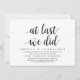 Modern manus tema, bröllopsflykt inbjudan kort (Till sist, vi gjorde). Det är perfekt för din bröllopsflykt avslappnade sjöside bröllops middag, dans och fest.