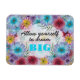 Öka utrymmet med det här anpassadet med en flexibel fotomagnet, en perfekt som blandar funktioner och personlig flust. Den här magneten har en livlig och komplicerad design av blommor och löv, varje detalj som spricker med färg. Blåblått, rött, gult och grönt skapar en fängslande mosaik som säkert fångar öga. Utformningens kärna är ett inspirerande citat, "Låt dig drömma BIG", som är skrivet i eleganten svart och blå typsnitt som inspirerar och motiverar. Den här magnetens sanna charm ljuger i dess anpassningsbarhet. Oavsett om du vill behålla det nuvarande budskapet eller skriva ut ditt eget ord av visdom, så är valet ert, och skapar det vara en verkligt personlig fråga.