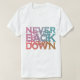 Den här dynamiska t-shirten innehåller den djärva frasen "Aldrig Back Down" i dynamiskt brev med flera färgader, som ställs mot en motiverande bakgrund med abstrakt. Den geometriska utformningen och det energiska färg-systemet skapar en synligt påfallande och inspirerande biet, perfekt för dem som anammar återhämtningsförmåga och beslutsamhet