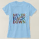 T-shirt-designen har texten "Tillbaka aldrig ner" i en fetstilt multifärgad. Varje ord skulle kunna vara ett annat färg och skapa en dynamisk och öga-infångande visning av återhämtningsförmåga. Teckensnittet i sig kan vara starkt och aningen angulärt, vilket understryker meddelandets bestämda anda. Kom ihåg att det inte finns några personer med i den här utformningen.