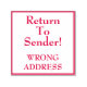 Utformningen av gummi frimärke innehåller meddelandena "Återvänd till avsändare!" och "FEL ADRESS". Den kan användas för att ange att mottagen post har levererats till fel adress eller att mottagaren är okänd och bör returneras till avsändaren.