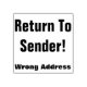 Den här gummidesignen i frimärke innehåller meddelandena "Återvänd till avsändare!" och "Fel Adress". Det skulle kunna användas för att ange att mottagen post kan ha adresserats felaktigt och bör skickas tillbaka till avsändaren.