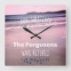 Tiden är inte viktig med den här klockan. spelar ingen roll, bara använda alternativet "anpassa den här mallen" för att infoga din familj namn på den här sandstrandklockan! Vitt och havs och blått typsnitt på en plan på strandscenen. Spelar ingen roll!