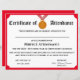 Utformningen har en röd trim med en bild av ett guld-medalj-ribbor i centrum. Titeln visas i det traditionella teckensnittet för ett certifikat. All text är anpassade. Baksidan av färg matchar framsidan. Tillgängliga färg är röda, guld, grönt och blå.