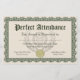 Perfekt Attendance Award i underbar grönt och solbränna med ett guld-tonsmärke. Visa din uppskattning och dina grattisar för studenter och personalen med detta intyg om anpassningsbar, personligens officiell. Lägg till din egen online för detaljtext och beställ anpassningsbarna för certifikat som skrivs ut, som du har gjort för ceremonin.