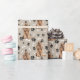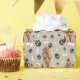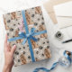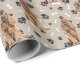 En bild av en vacker buff färgad Cocker Spain hund är utmärkelsen i mönster på tillfällens gåva som omsluter papper. Hund sitter mitt i mönster på svart tass avtryck och vita ben och upprepas med blek än bakgrunden.