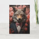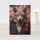 En varg för elegant i kostym med rosa blommor i tillfällen-hälsningskort